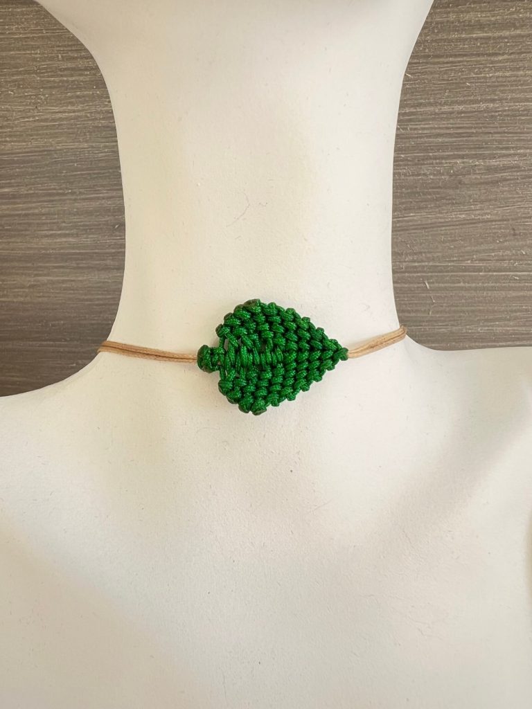 Βραχιόλι μακραμέ πράσινο φύλλο