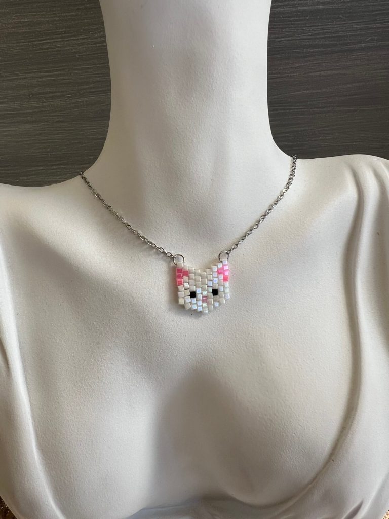 Κολιέ γάτα κεντημένη με χάντρες Miyuki